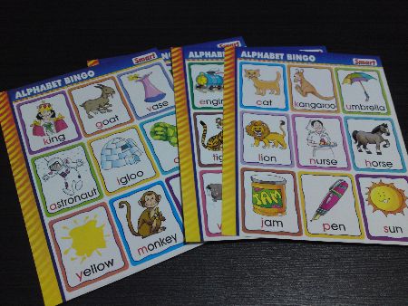 Costs only SGD$10.00! Purchased from Popular Bookstore @ Lot 1 Shoppers Mall Choa Chu Kang. This bingo game offers many hours of repetitive fun to help reinforce single letter sounds and corresponding letter shapes (small caps and large caps) with your tot or pre-schooler. Objective of the game is to simply spin the spinner and be the first to complete the game board to win! For starters, parents can also allow for just the matching completion of only 3 letter sounds in a straight line ala tic-tac-toe to win.. then gradually increase when the child is up for the challenge!