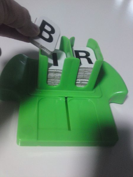 Once you open the box, remove all the letter tiles from the boards. Scramble all the letters and stack/load them up on the stand. After which you just slide the stand forward and 2 letter tiles will slide out, slide the stand back and ready to play. The first player to combine or form a proper word on the game cards will keep the cards. Upon finishing all the game cards, the one with the most game cards wins.