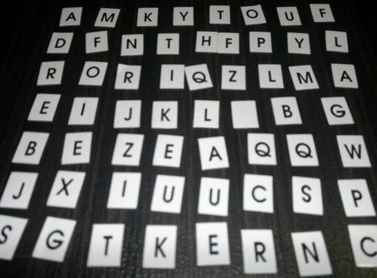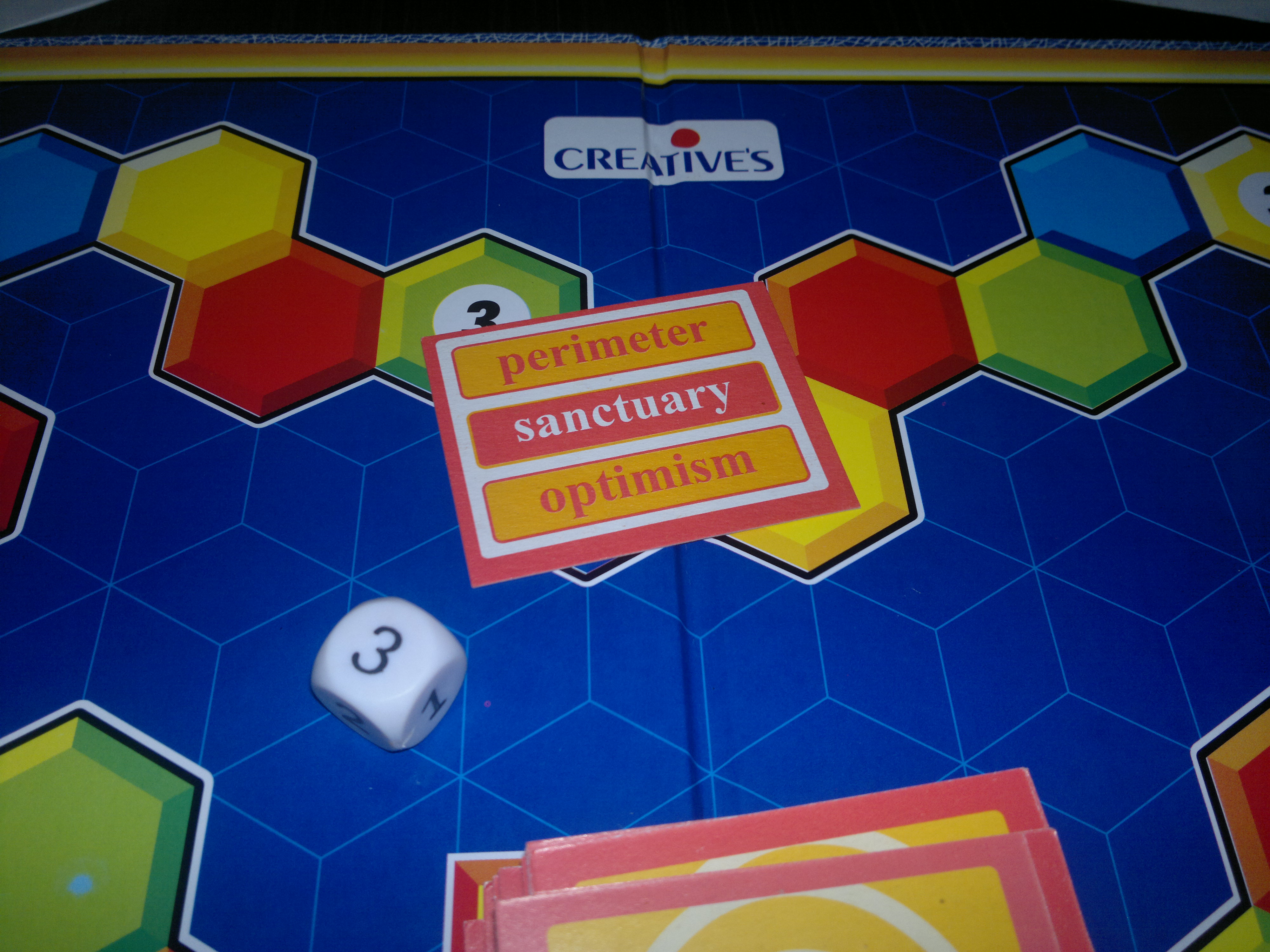 For example, if a 1 is rolled the top word on the card picked is to be read..
