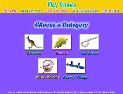 Upon selecting a category, the child can then do up to 9 levels of flashing of varying difficulty.